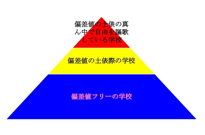 そのことを前提に偏差値という物差しから割と自由な学校が存在します。上図に言う「偏差値フリーの学校」です。
